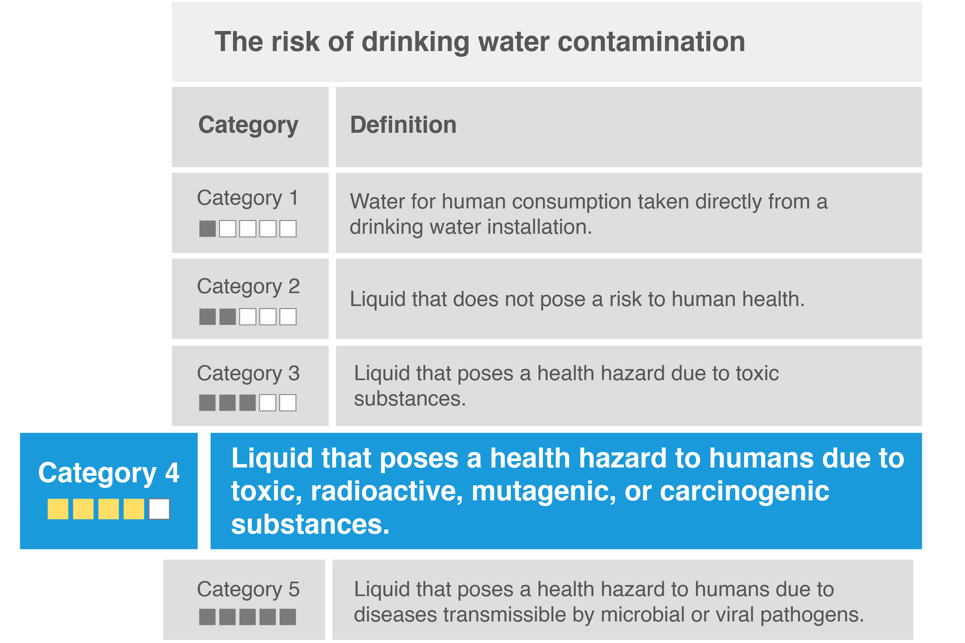 ➞ Schützt das Trinkwassernetz in der Stiefelwaschanlage vor Verunreinigungen bis Flüssigkeitskategorie 4 gemäß DIN EN 1717 und DIN 1988-100.